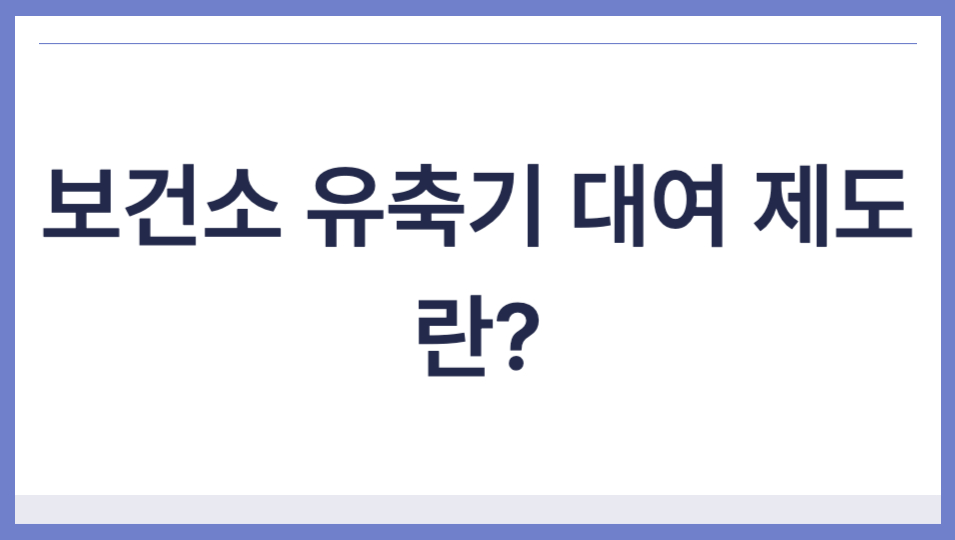 1. 보건소 유축기 대여 제도란?